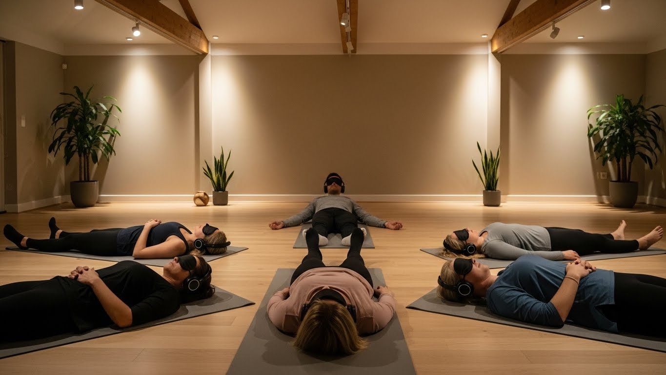 Guided breath is paired with 9-dimensional sound delivered through headphones, supporting regulation, emotional processing, and clarity.